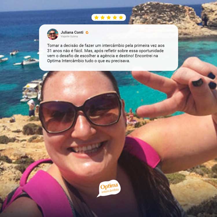 Juliana Conti Elias também fez seu intercâmbio com mais de 30 anos e a Optima participou desse sonho. Olha só como foi sua experiência em Malta: