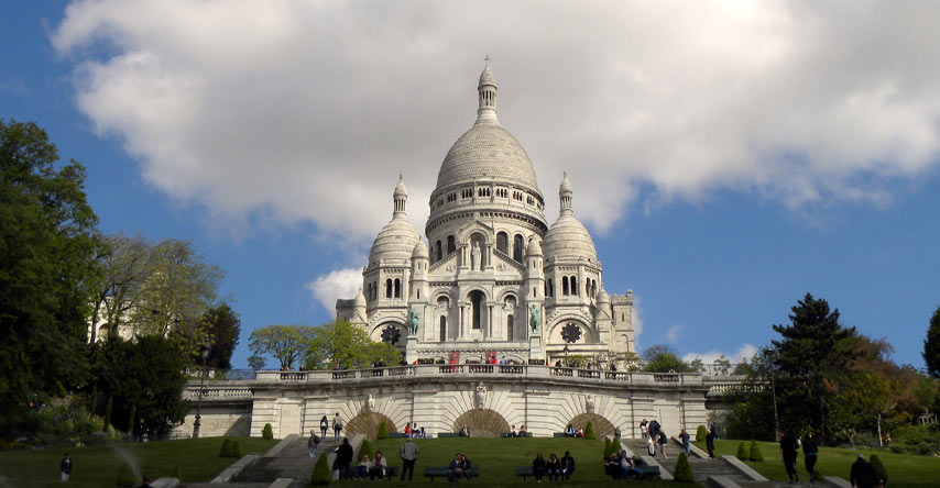 A igreja branca de Sacre Coeur fica no ponto mais alto da cidade na área de Montmartre. Dos degraus que se estendem à frente da igreja é possível ver toda a incrível Paris e apreciar o por do sol de forma inesquecível. A área de Montmartre oferece também muito mais do que uma vista incrível, mas lojinhas e cafés charmosos que transpiram toda a cultura francesa.