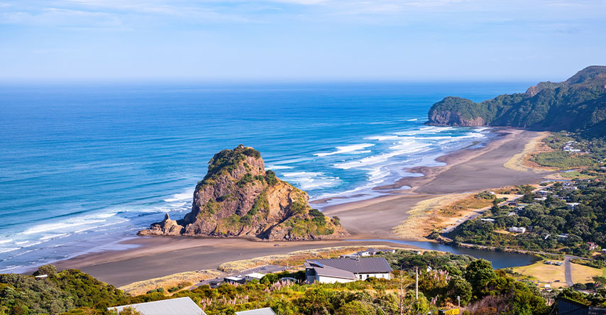 A cerca de 40 minutos de distância de Auckland fica Piha, que é uma das praias maisconhecidas para a prática do surf! E ela tem uma curiosidade: a areia da praia é preta. Mas isso não muda em nada a qualidade da praia!