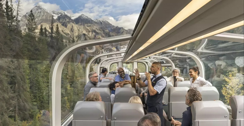 A Rocky Mountaineer é uma empresa privada do Canadá. Eles oferecem pacotes de viagens luxuosos pelas Montanhas Rochosas, com buffets inclusos e serviços de hospitalidade a todo momento.