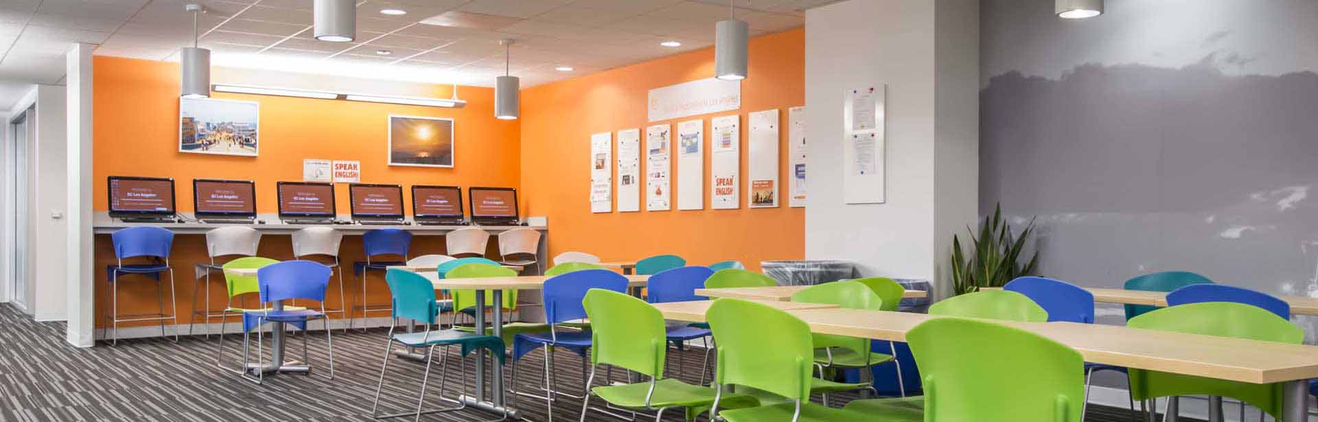 A EC English Language Center de Los Angeles está muito bem instalada em um moderno edifício a 5 minutos da praia de Santa Monica, uma das praias mais badaladas da costa da Califórnia. Além do ensino de excelente qualidade, a escola oferece ao estudante uma ampla área de convivência, onde é possível fazer um lanche e interagir com outros estudantes, biblioteca, laboratórios de informática com computadores que fornecem acesso a internet, wifi em todo o prédio e programas sócio-culturais nos quais os estudantes desfrutarão o melhor de Los Angeles em passeios que permitem ao estudante conhecer mais sobre a cidade, fazer amigos de diversas nacionalidades e praticar o Inglês de uma forma bem dinâmica e divertida.